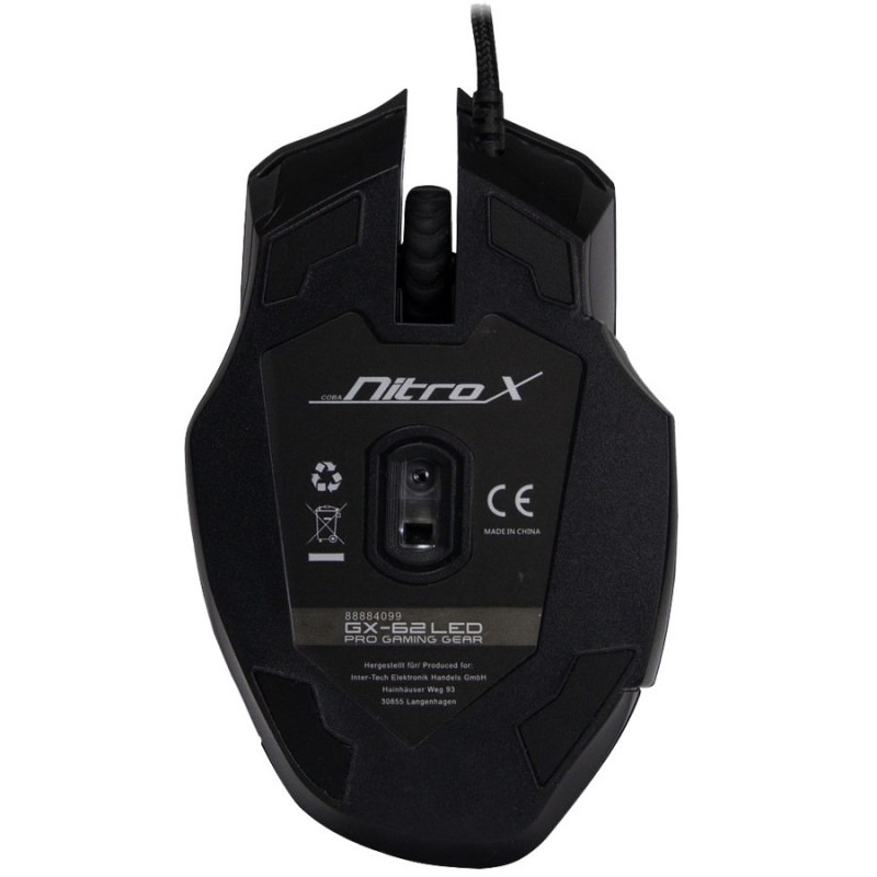 Souris Gamer NITROX. Éclairage LED RVB – Effets d’eclairage Réglable en 7 Couleurs (rouge, bleu, vert, jaune, violet, rose, turquoise). Technologie de Connectivité: Filaire – Interface: USB 2.0 – Nombre de Boutons: 6 Boutons – Type de Capteur: Optique (SUNPLUS 180A). Résolution de Capteur réglable: 1000 , 1600 , 2400 et 3200 dpi – Durée de vie: jusqu’à 5.000.000 frappes. Longueur de câble: 165 cm. Systéme d’exploitation requis: Windows 98/2000 / XP / 7/8/10 , MAC OS, Linux. Dimensions: 37 x 75 x 121 mm. poids: 122g. Garantie: 1 an